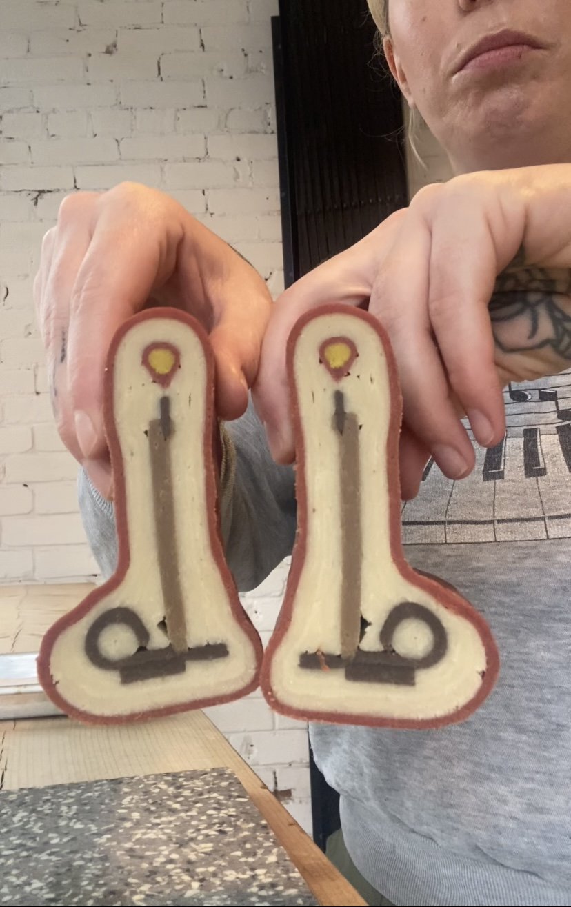 The cookie roll is flavoured with Vanilla and peppermint, and coloured naturally with Cocoa Powder, Beetroot Powder, Turmeric, not enough to taste, just enough to colour! yields 12-14 cookies!
